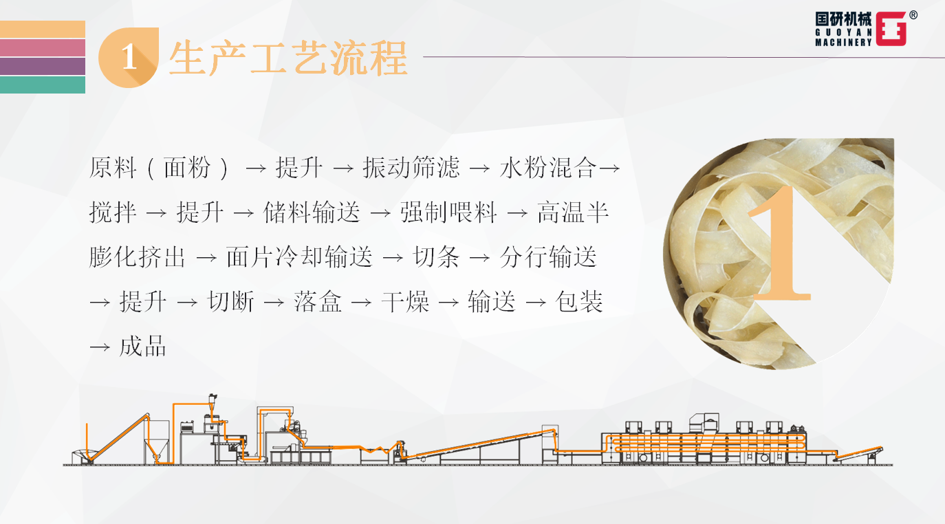 高溫半膨化方便面是一種非油炸方便面,沖泡3~5分鐘即可食用。由于不含防腐劑、食用膠等添加劑,即可使其復水性好,面條勁道,深受廣大消費者喜愛,現(xiàn)已經(jīng)成為非油炸方便面中的主要產(chǎn)品之一。經(jīng)過研究和實踐,本公司于2017年成功研發(fā)了連續(xù)自動化KW6生產(chǎn)線和生產(chǎn)工藝,適用于刀削寬面、重慶小面和陜西干涼皮等產(chǎn)品。